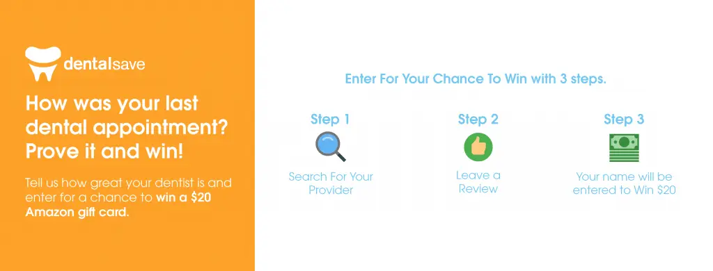 DentalSave is even more rewarding when it’s shared. That’s why we want to hear from you! Tell us about your dentist experience and we’ll enter you into our drawing for a $20 Amazon gift card.